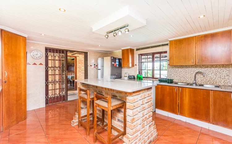 Outside, you’ll find a large sparkling pool and an entertainment lapa, perfect for hosting family and friends. Additional features include a separate laundry room and storage area.