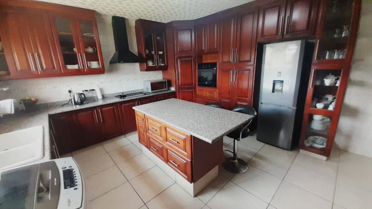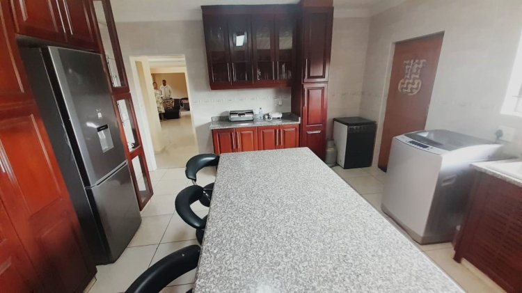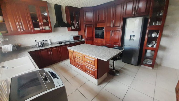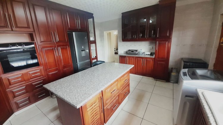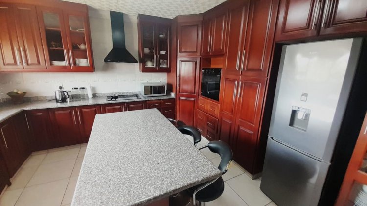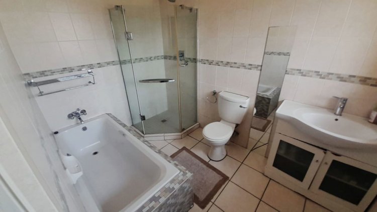 This lovely home is ideally located for family living as it is located in a serene environment with proximity to many popular schools and religious organisations.the home offers a comfortable haven for family with a well thought out layout,en suite bathroom and a large garden.for convenience there is a second family bathroom as well.a stunning kitchen with a high end oven ,hob and stove with exquisite built in cabinet finishings and a breakfast nook for early morning chatter and coffee.fully tiled the home is comfortable and has an enclosed patio which can be utilised as office space or used for relaxation.the open plan lounge,dining area and tv space has a layout that creates a sense of flow and connection between spaces and meal time and encourages family togetherness and interaction.there is enough natural light to enhance a cozy comfortable feeling of warmth and leisure.at the back of the property is well landscaped gardens with a jojo tank for your water needs.a double garage takes care of your parking with ample space for additional vehicles.get in touch today for an exclusive viewing.