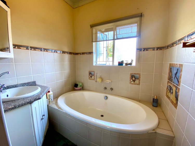 Situated in a highly sought-after area, this stunning home offers the perfect blend of comfort, style, and convenience. It is ideally located near schools, colleges, and medical practices. It's a true gem for families. The home features lovely bedrooms, including a main bedroom with a modern ensuite. The open-plan kitchen boasts granite finishes and it flows seamlessly into the lounge, where a cozy fireplace is installed. The sunroom is a delight with breathtaking views of the garden. A thatched lapa is the perfect place in which to relax after enjoying a swim in the sparkling pool. Call me today to arrange a private viewing!