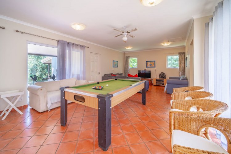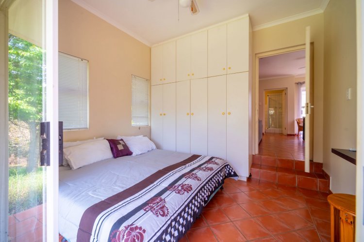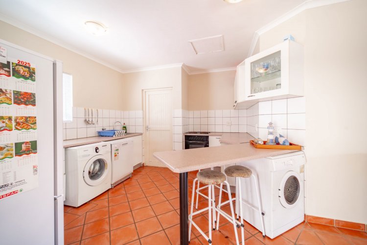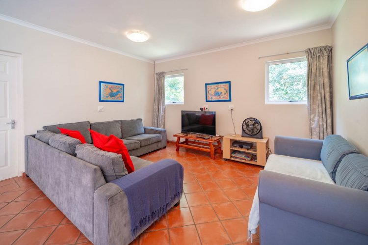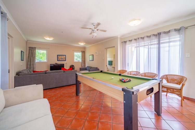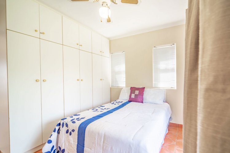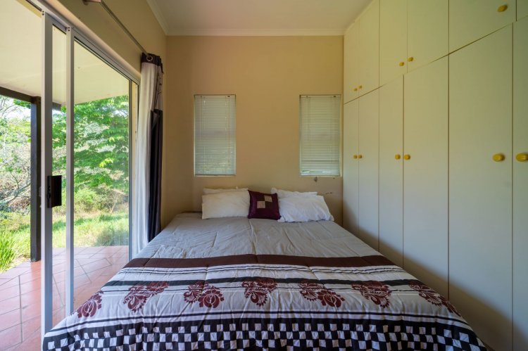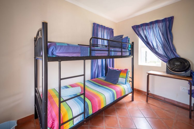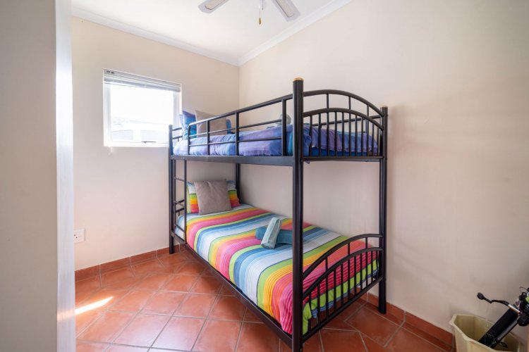 This simple and functional 4 bedroom home has 2 bedrooms and 2 bathrooms, kitchen , open plan lounge and dining room in the main house, then 2 bedrooms with bunkbeds and a bathroom with a shower outside the house for older kids or guests.
