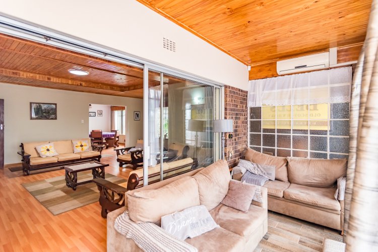 A cosy TV/sunroom with air conditioning ensures year-round comfort, while the built-in bar makes entertaining a breeze. Step outside to enjoy the sparkling chlorinated pool, complete with a built-in braai for relaxed weekends with friends and family.