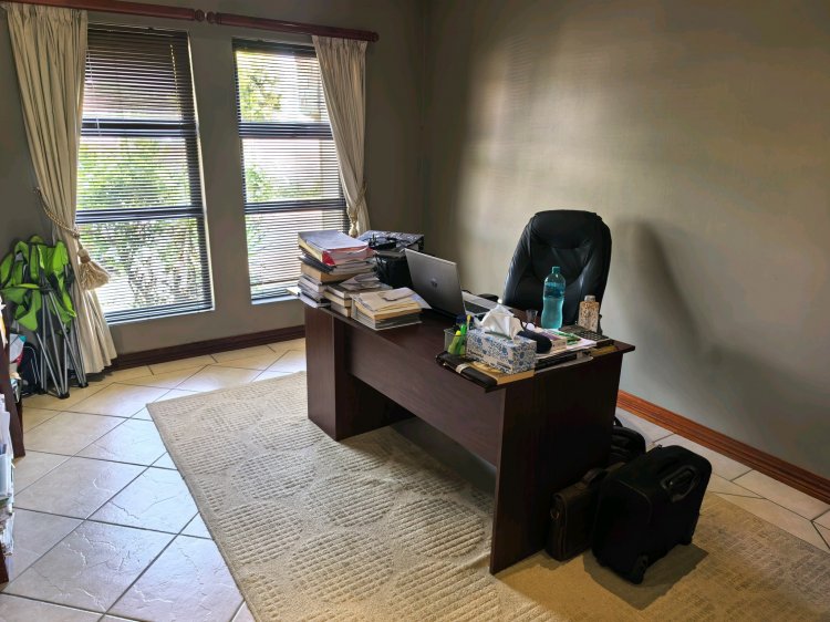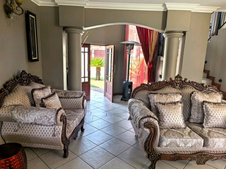 This elegant family retreat in the prestigious Sonneveld Estate offers the perfect blend of style, comfort, and security. With 24-hour guarded access, peace of mind comes standard, allowing you to focus on enjoying the lifestyle this home was designed for. Inside, the home offers four spacious bedrooms, one currently styled as a private study but easily converted back into a bedroom to suit your needs. Two sleek bathrooms, a guest loo, and generous living spaces create a warm and welcoming environment for family life. The elegant lounge and dining area flow seamlessly into a well-appointed kitchen, while three air-conditioners ensure comfort through every season. Designed with entertaining in mind, the outdoor area is a true oasis. A sparkling pool sits amid lush gardens enhanced by striking cycad trees, while an upstairs balcony provides the perfect setting for sunset views or morning coffee. Practical features add to the home’s appeal, including a double garage, a built-in generator to ensure seamless power during load shedding, dual geysers with timers, and a pool auto-timer for energy efficiency. A Wendy house offers additional storage, while four CCTV cameras linked directly to your phone provide an extra layer of security. Conveniently located near Mall@Carnival, Carnival City, and with easy access to major highways, this residence combines secure estate living with the best of modern convenience. More than just a house, it’s a lifestyle retreat — a home where every detail has been thoughtfully designed for luxury living.