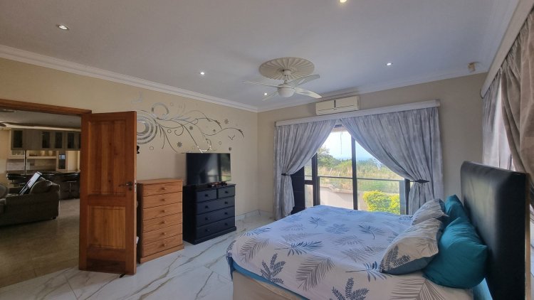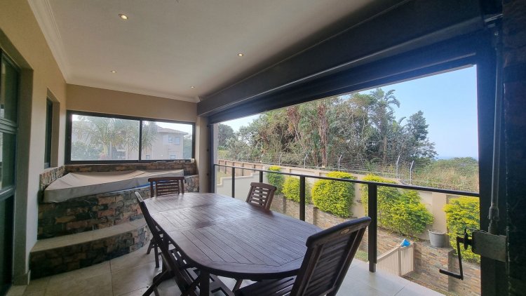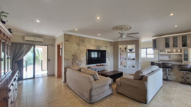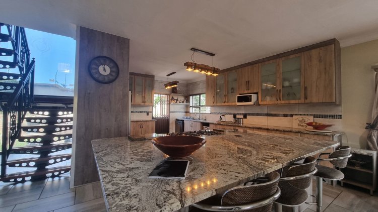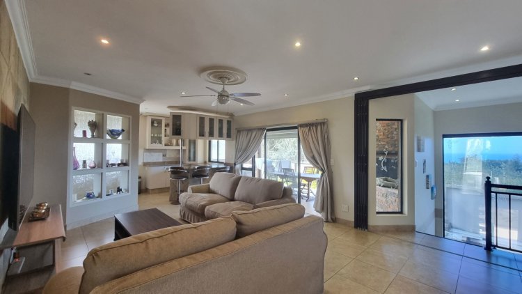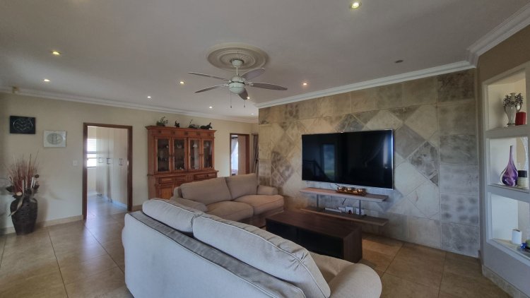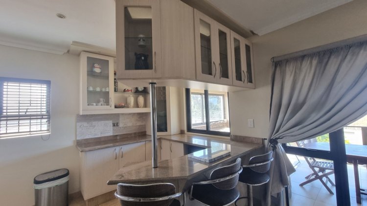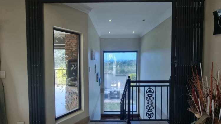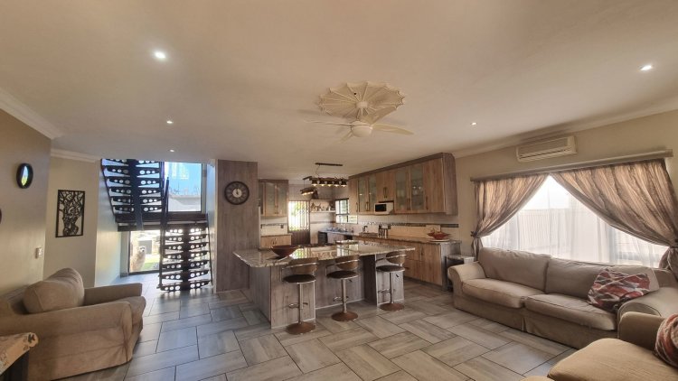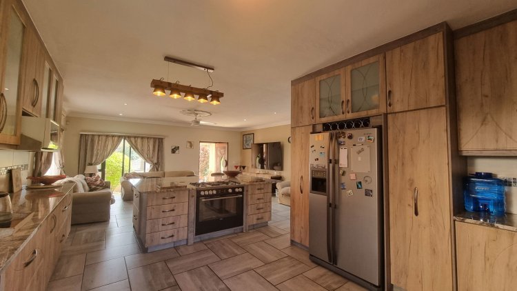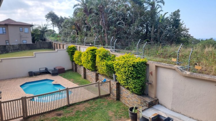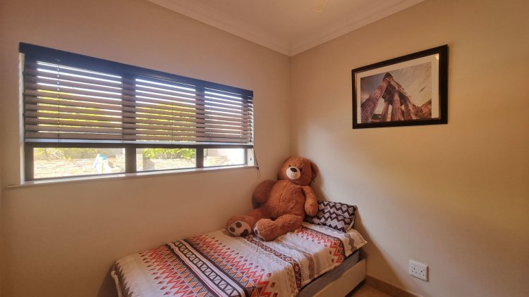 Outdoors, a sparkling swimming pool takes centre stage, perfect for summer days with family and friends. The paved courtyard and entertainment space provide a low-maintenance setting, while JoJo water storage tanks ensure peace of mind during water outages.
