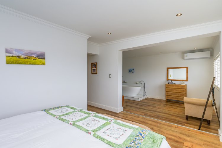 One bedroom downstairs with bathroom. The bedrooms upstairs are all bright and airy. The main bedroom has an en-suite plus lounge area, walk in wardrobe, stunning sea views.
