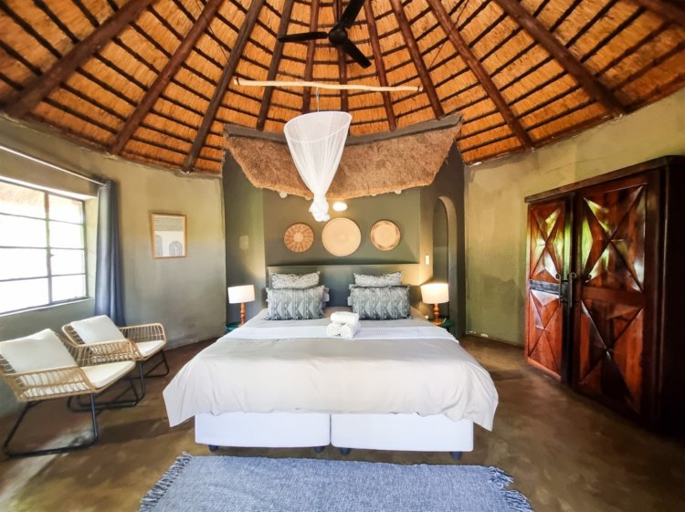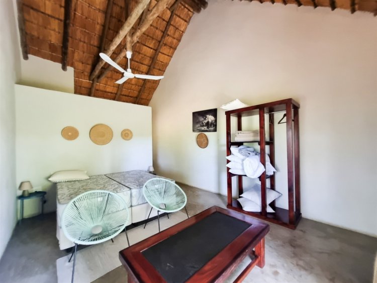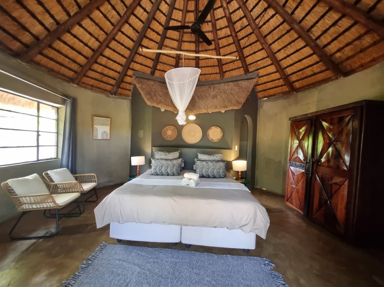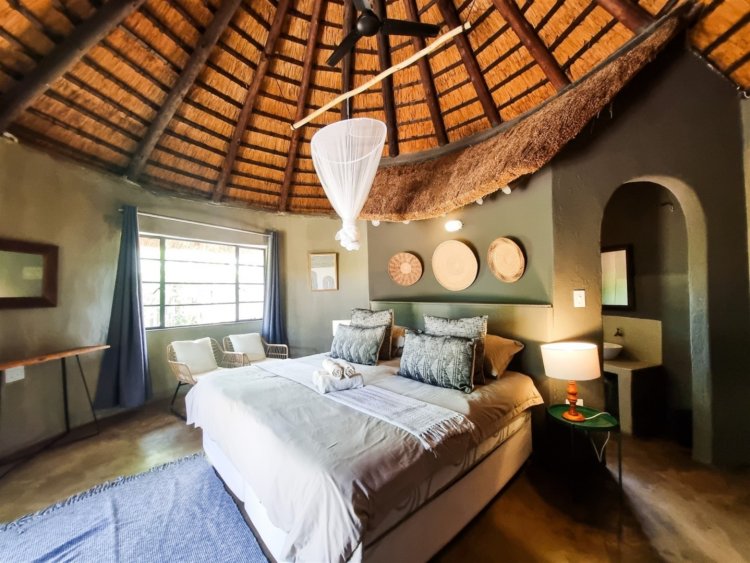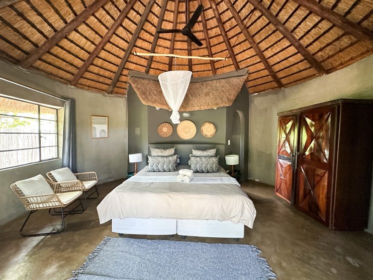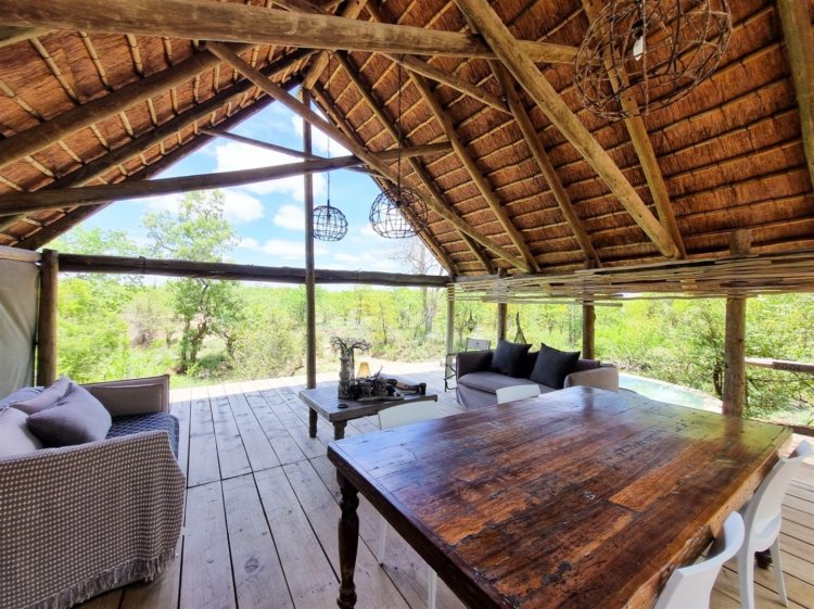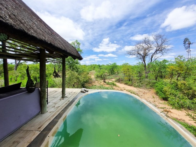 3 en-suite rondavels 2 en-suite bedrooms Guide’s room Additional amenities include camp kitchen, dining area and covered patio area with pool.