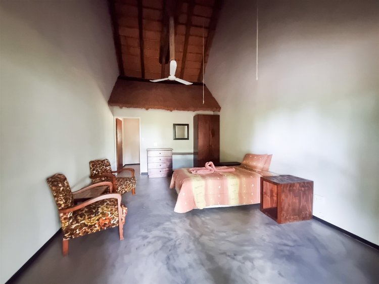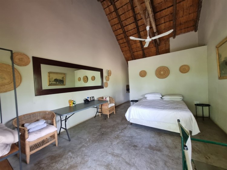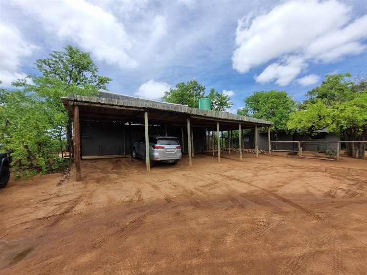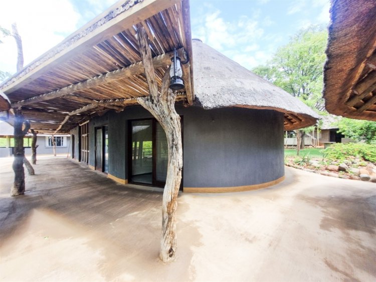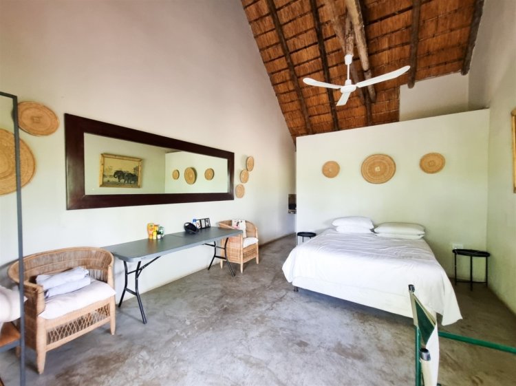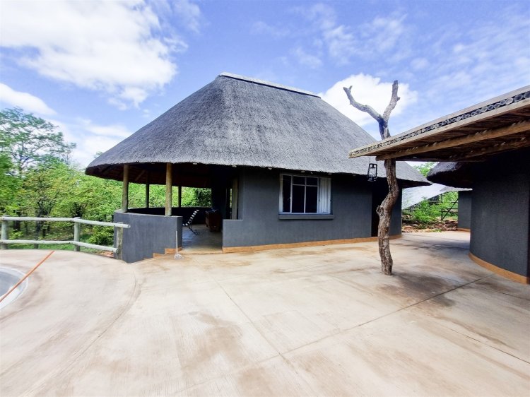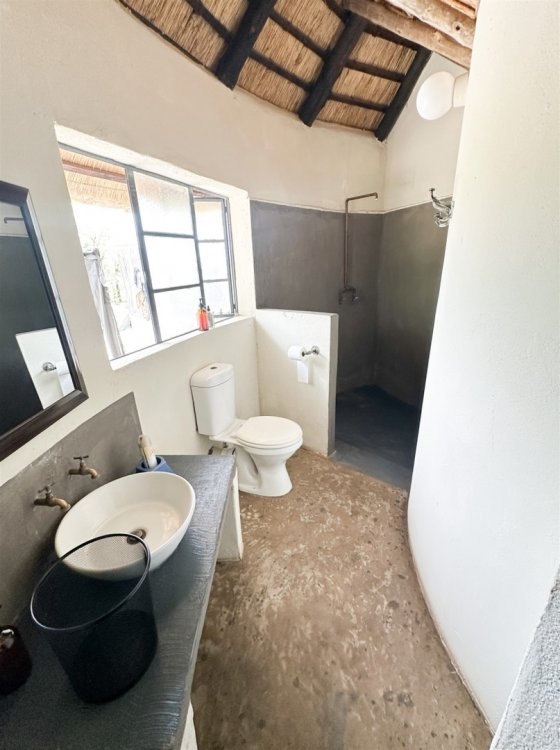 • Overlooks dry sandy Drainage line with large trees • 3 Rondawel guest room ensuite • 2 Chalet room ensuite • 1 x guide room • Staff room and bathroom • 3 Bedroom, 2 bathroom New house 96% complete (not part of lease agreement) • Kitchen • Patio • Pool • Boma • Solar run, gas geysers and donkey water heater. • Water hole • Tenant has his own Game vehicles • Purchaser can negotiate a new lease