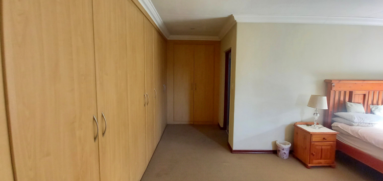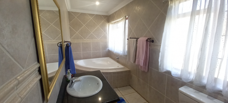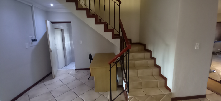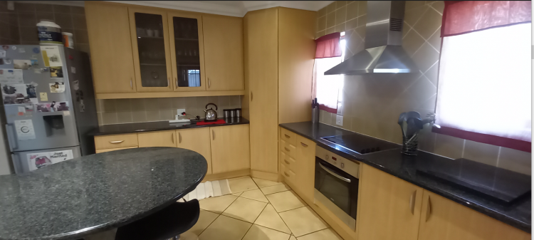Introducing this exquisite 5-bedroom, 3-bathroom family home, ideal for those in search of generous space and comfort, complemented by a low-maintenance garden. Downstairs Features: - Welcoming large entryway - Guest bedroom with en-suite bathroom - Braai room for entertaining - Expansive open-plan living and dining area with an integrated kitchen - Convenient small laundry area - Elegant granite countertops and a cozy fireplace Upstairs Highlights: - Four spacious bedrooms, two of which open onto a balcony - Full guest bathroom - All bedrooms equipped with built-in cupboards and new air conditioning units The master suite offers an impressive retreat with ample built-in storage and an en-suite bathroom featuring double vanities. This property is an excellent choice for extended families, boasting robust security measures including interior and exterior cameras, security beams, and electric fencing. Additionally, a comprehensive inverter system ensures you'll never be left in the dark. Located in the highly sought-after area of Menlo Park, this home is not to be missed!