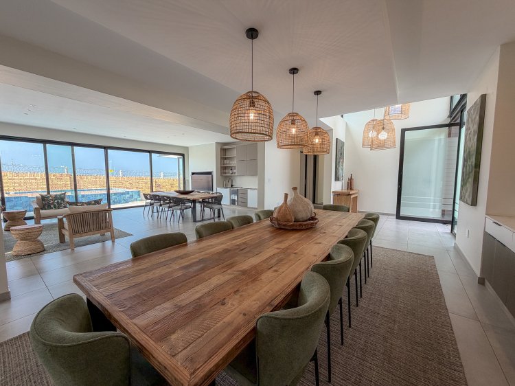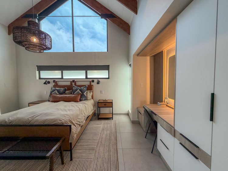 Outdoor & Additional Features - Swimming pool with water feature and a cozy boma - Professionally landscaped garden with drainage installed - Double extra-wide garage, with additional length for a 3rd car and additional pull-through access - Staff accommodation with separate bathroom - Electric geysers throughout