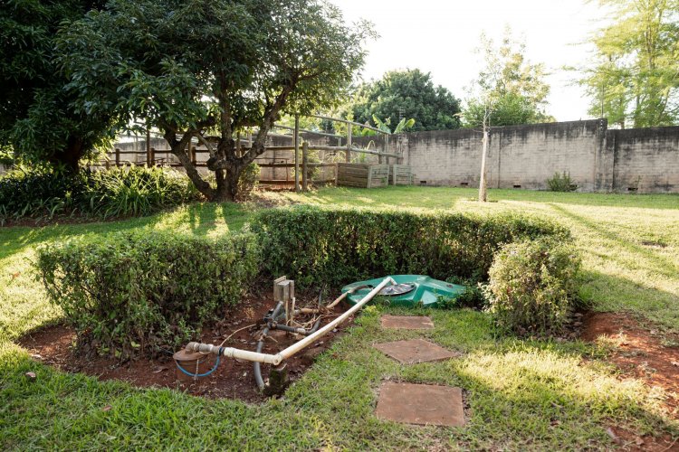 There are modern large staff quarters a yard with plenty of space. There is a complete new solar system to the house and a working borehole