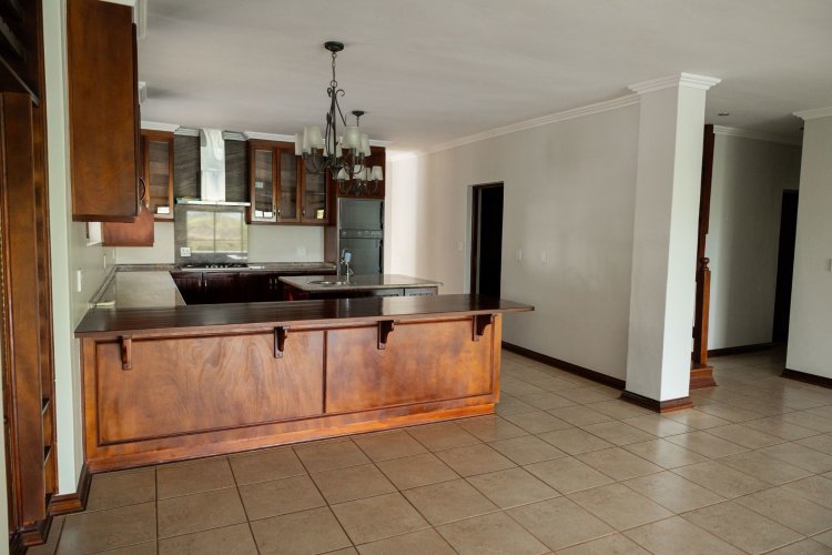 The entrance is to the house gives you that wow factor which then leads to the living and dining area which leads to the kitchen . The French windows open up onto to the terrace and onto the garden. The living area is very spacious and has wooden floors. The kitchen is very modern of wood design with a island large cupboards and ample working granite tops, I would say a dream kitchen