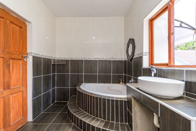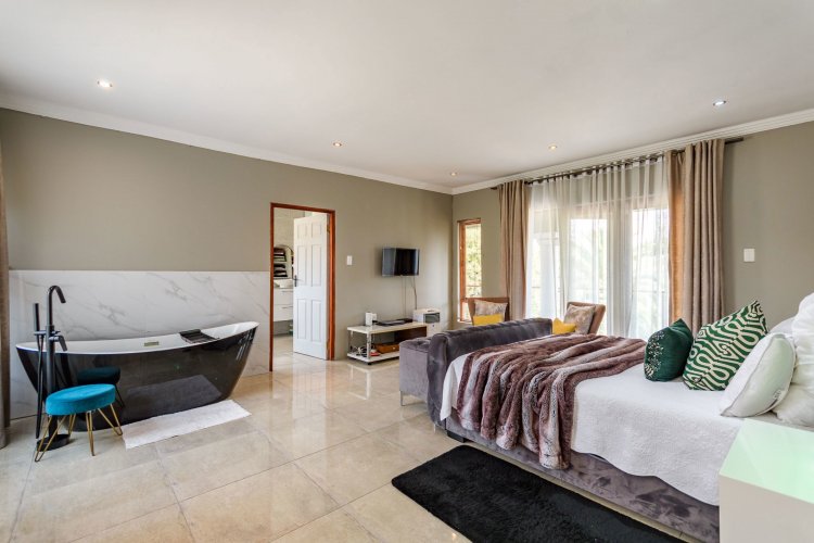 Moreover, the main bedroom is stylishly designed in an open-plan layout with a stylish free-standing glossy black bathtub, and freestanding matte-black mixer taps.