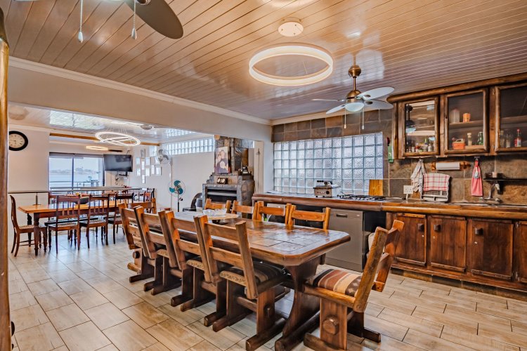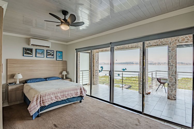 One of the very few lock-up-and-go waterfront properties has just hit the market! This home is a dream come true for water lovers and is ideal for hosting family and friends. Featuring 5 spacious bedrooms, 4 luxurious en-suite bathrooms, and a convenient guest toilet, this house combines comfort with functionality. The heart of the home is the expansive open-plan kitchen, dining, and TV room area. From here, step out onto the deck and take in breathtaking views of the dam – the perfect spot for morning coffee or evening sundowners. Downstairs, you'll discover a true entertainer's paradise. The “Man Cave” boasts a built-in pub and a big-screen TV, with direct access to the boat garage on one side. Sliding doors open onto a large stoep, where you can fire up the braai or dive straight into the dam for a refreshing swim. And that's not all – the property features a UV-protected floating plastic jetty, making mooring your boat or jet ski an absolute breeze. This rare opportunity won't last long – don't miss your chance to own the waterfront property of your dreams!