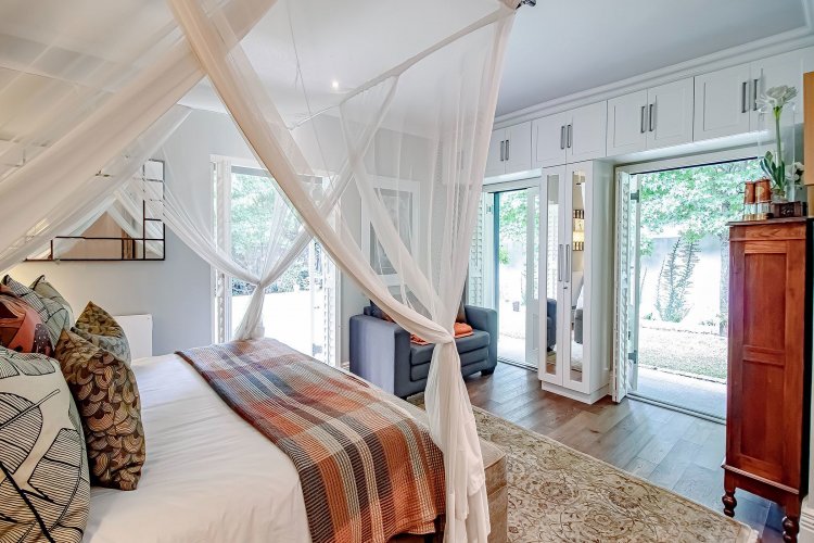Accommodation is generous and well considered. The home offers five spacious bedrooms, all en-suite, providing comfort and privacy for family members and guests alike. The main bedroom is a tranquil retreat, featuring ample cupboard space, a full en-suite bathroom and views over the garden. Additional bedrooms are versatile and can easily accommodate a work-from-home office, guest suite or teen wing.