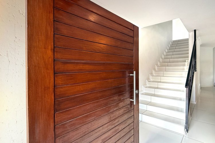 Upstairs, you'll find four spacious bedrooms, all carpeted for comfort. The main bedroom is a true retreat, boasting ample storage and an ensuite bathroom with a double basin and a shower. This bedroom also opens onto a large balcony with breathtaking views. The other three bedrooms share a full bathroom and 2 of the bedrooms have access to a second balcony.