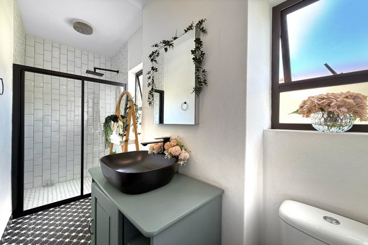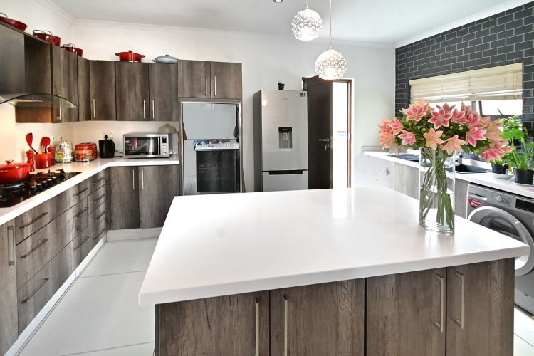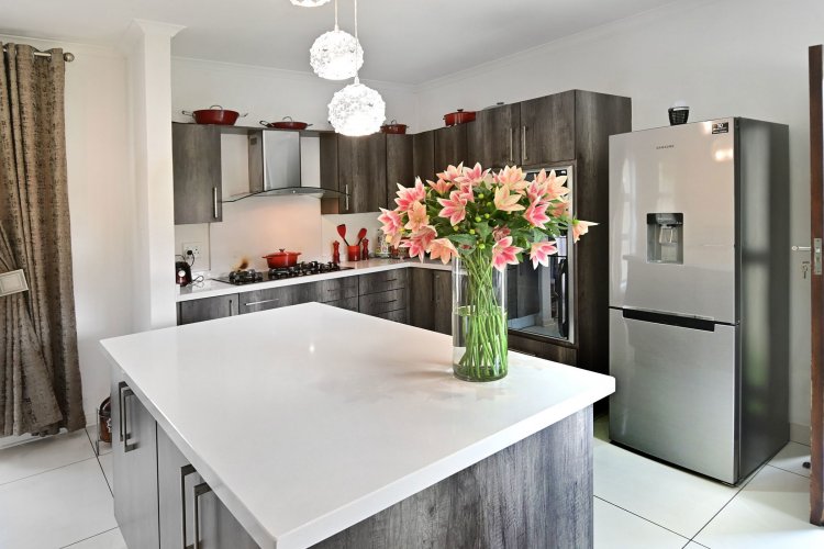 Upon entering the property, you're greeted by a tiled living area that includes a formal lounge with a cozy fireplace and a sunroom with sliding doors leading to the private garden. The open-plan dining room and kitchen are perfect for family gatherings, featuring a gas stove, an eye-level oven, and space for two appliances. There's also a large family room that can easily be converted into an extra bedroom. This level also includes a convenient downstairs toilet with a shower, a pantry for additional storage, and a shed outside for garden tools. Plus, the property is equipped with an inverter and battery to assist during load-shedding.