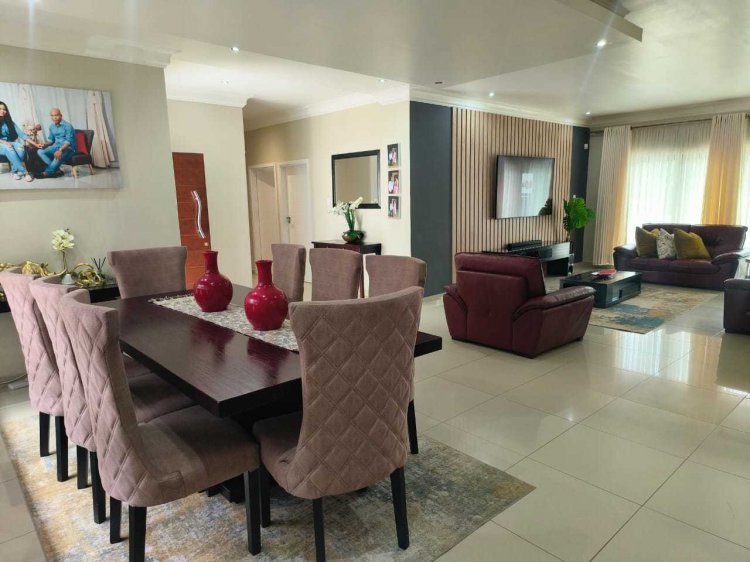 The home features a spacious open-plan lounge and dining area, flowing beautifully into a well-appointed kitchen with a separate scullery. Two of the four bedrooms boast full en-suite bathrooms, offering added privacy and convenience.