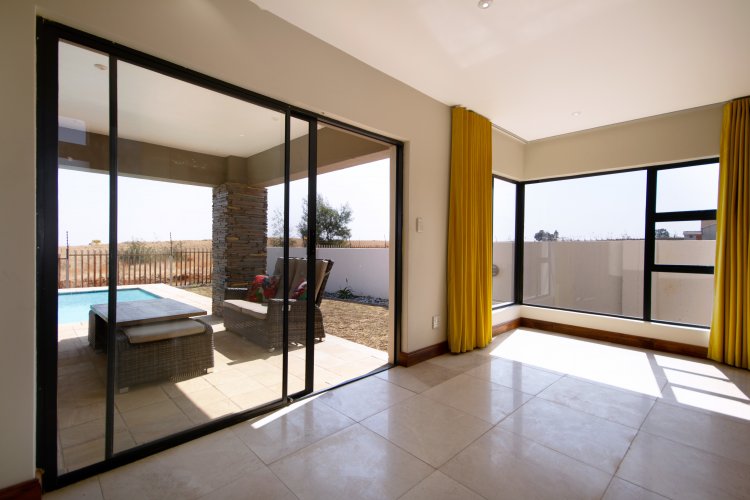 Welcome to a rare offering where architecture meets nature and every detail whispers sophistication. Nestled within a highly sought-after, pet-friendly estate with 24-hour access-controlled security, this ultra-modern, 5-bedroom luxury residence redefines contemporary living – and it's proudly set on the edge of a tranquil Game Reserve, offering uninterrupted views and the soothing sounds of wildlife as your daily backdrop.
