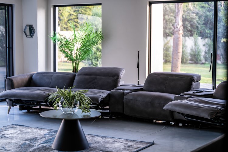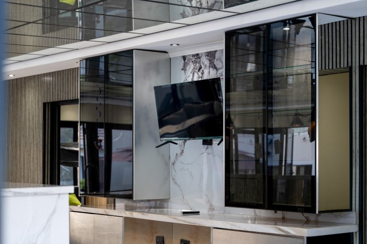 Designed for those who appreciate space, flow, and effortless entertaining, the home opens into expansive open-plan living areas that connect seamlessly with the outdoors. Floor-to-ceiling glass floods the home with natural light, while carefully curated finishes create a warm yet sophisticated atmosphere that balances elegance with comfort. The living areas are anchored by a striking dual gas fireplace, elegantly positioned between two lounges, creating warmth, ambiance, and a natural visual connection between the spaces. Every area has been thoughtfully planned to feel open, inviting, and perfectly suited to both grand-scale entertaining and intimate family living.