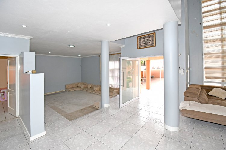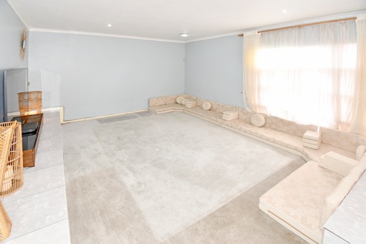 The main house is thoughtfully laid out across both downstairs and upstairs levels. Upon entering, you are welcomed by an elegant and inviting entrance hall that sets the tone for the home’s warm sophistication. To the left is a striking Arabian-style lounge, rich in character and fitted with a television, offering a luxurious yet comfortable space for hosting guests or enjoying family gatherings. To the right, a separate seating area provides a refined and tranquil setting for more intimate moments or formal entertaining.