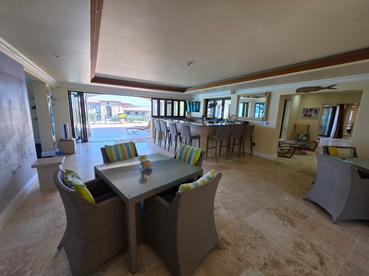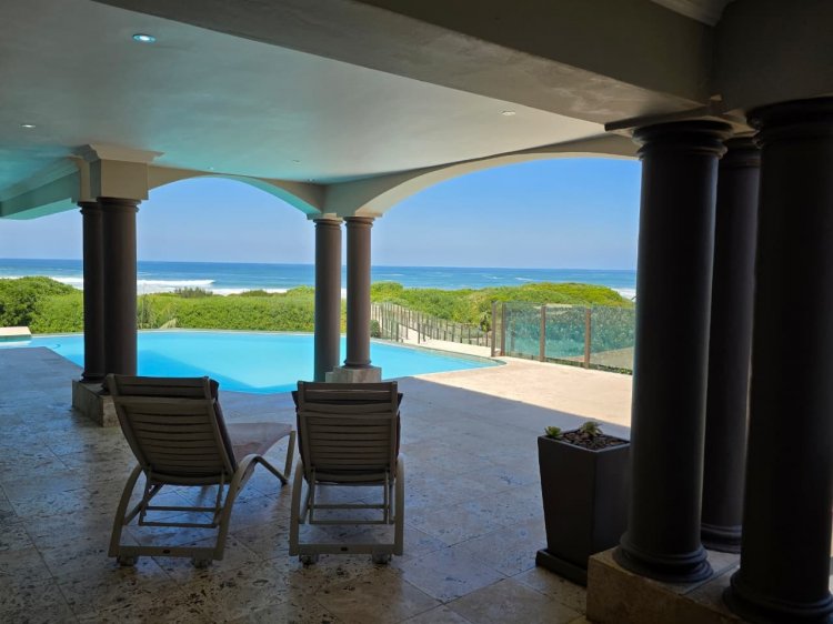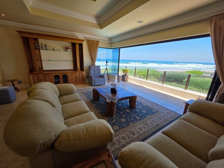 Set on an expansive 3,765 m² erf, the home spans an impressive 1,932 m² of refined living space across three beautifully designed levels. With uninterrupted views of the Indian Ocean and private access to both Myoli Beach and Cola Beach via an elegant boardwalk, this residence captures the essence of luxury coastal living.