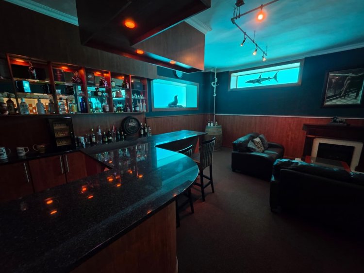 Upon entering, a grand entrance hall welcomes you into light-filled, open-plan living areas where modern design meets natural coastal beauty. The main level is dedicated to entertaining, featuring expansive lounge and dining spaces that flow effortlessly onto an ocean-facing balcony, inviting sea breezes and panoramic views indoors. A gourmet kitchen, breakfast room, director’s study, and a fully equipped private gym with shoreline vistas complete this level. A standout feature is the 150,000-litre heated swimming pool, ideal for year-round enjoyment.