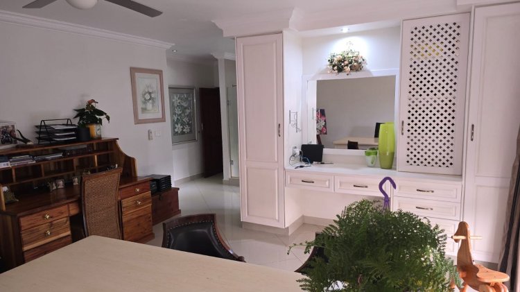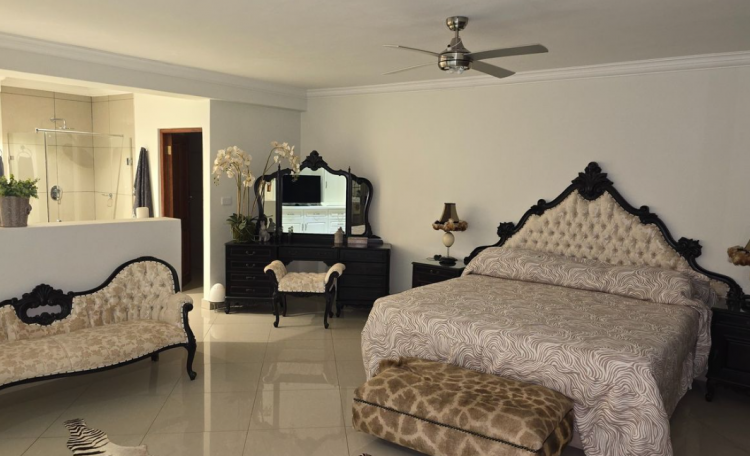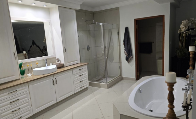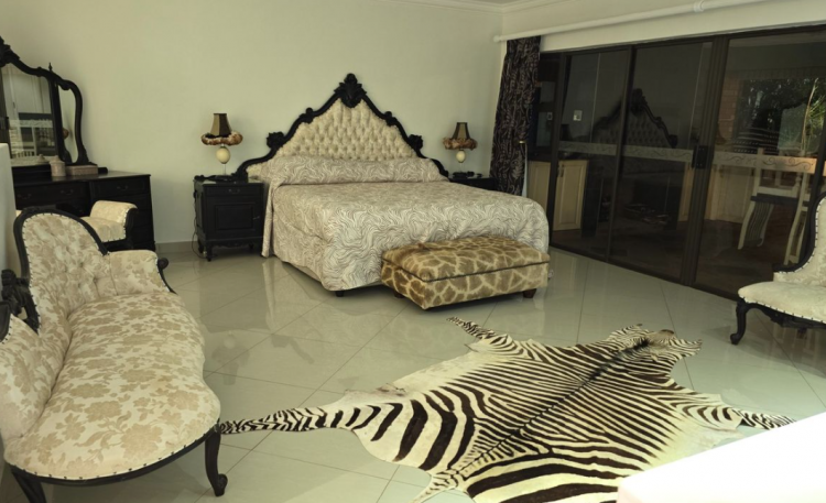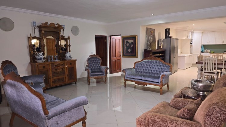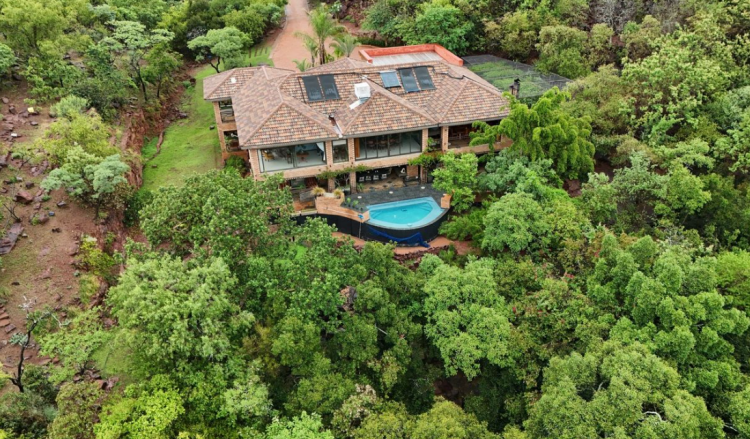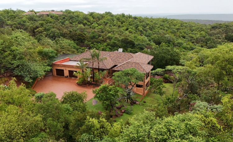 This unique home stands out among all other properties on the estate, offering accommodation across two floors, each of which can function independently. It features six luxury suites, making it suitable as a primary residence or a holiday home capable of hosting two families with ample space for relaxation. Additionally, the home boasts several entertainment areas on different levels, including a heated swimming pool and a boma, all of which seamlessly blend with the outdoors.