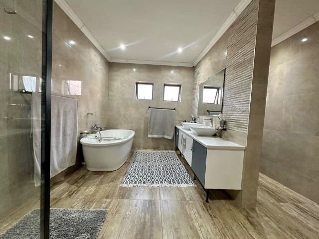 Step into luxury living with this stunning seven-bedroom home, perfectly situated in a prestigious 24-hour security estate. From the moment you enter, you are welcomed by a beautifully designed lounge that sets the tone for the elegance throughout the property. The spacious kitchen is a true chef’s delight, seamlessly positioned across from a stylish dining room. Adjacent to the dining area is a cozy reading nook, ideal for unwinding with your favorite book.