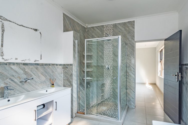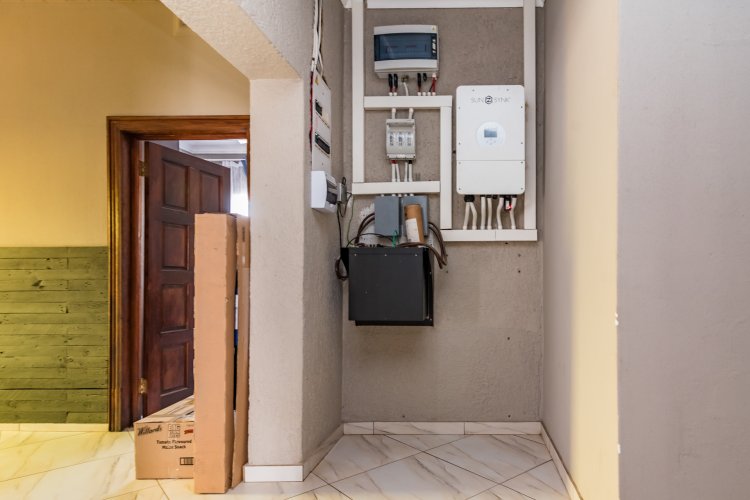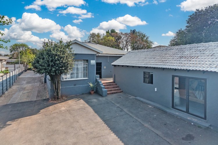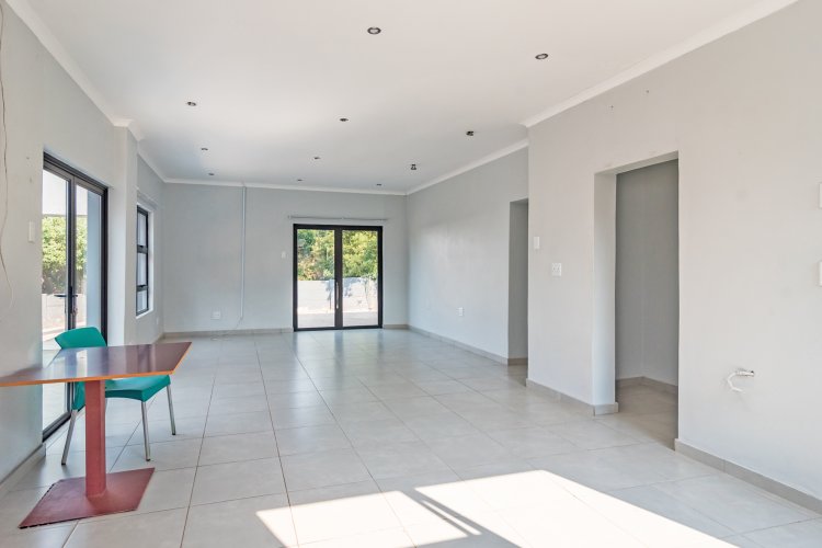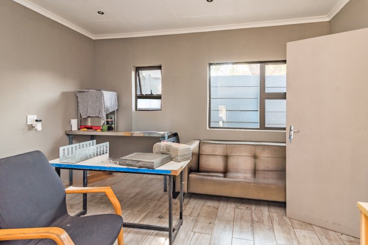 Salon/office from home: a full room with a bathroom (vanity only), brand new aluminium door Flatlet 1: 1 bedroom, 1 bathroom with a shower and a lounge Flatlet 2: 3 bedrooms, 1 bathroom and guest toilet, lounge, storage room, laundry area with unfinished kitchen (cupboards to be installed) topped off with all brand-new aluminium doors and frames. The flatlet is also fully powered by the solar system as well as the solar geyser.