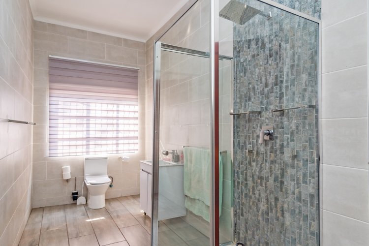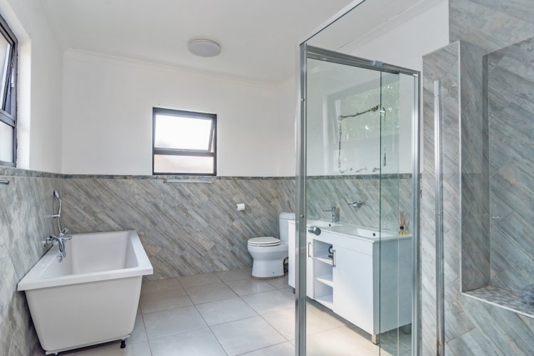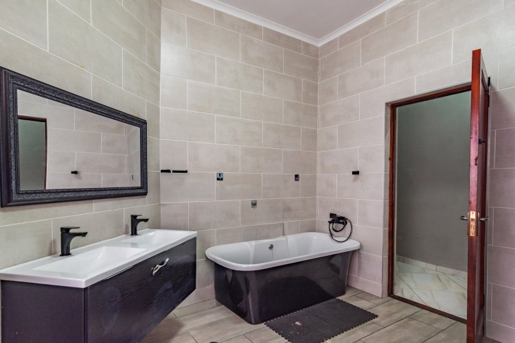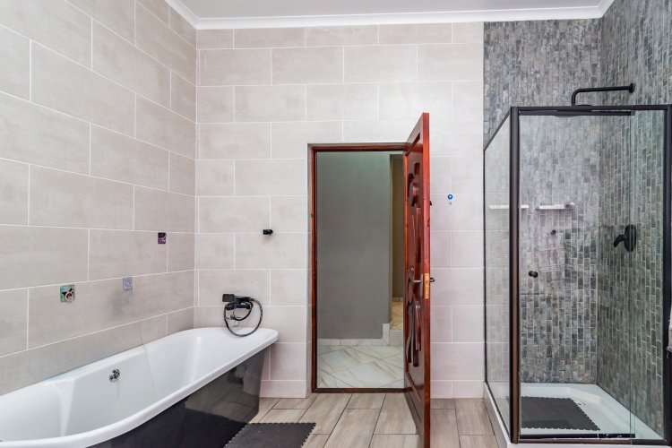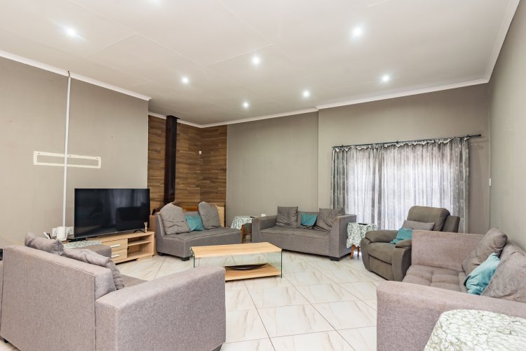 Spoil yourself in a prime location with this home, which collectively has 9 bedrooms separated over 4 dwellings. Main house: 4 bedrooms, 3 bathrooms plus study boasting an extraordinarily large and modern kitchen with quartz counter tops, built-in Smeg appliances (gas hob, oven, basins). Additionally, a massive lounge which leads into a huge indoor entertainment area and an extra room/office. Along with all of this, the home has been completely and newly re-tiled and repainted, including new ceiling fans in all the bedrooms. Furthermore, the house is completely powered by 2 x 10kw batteries supported by 12 solar panels, as well as solar geysers and backup gas geysers.