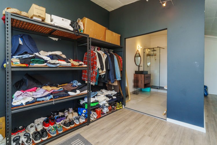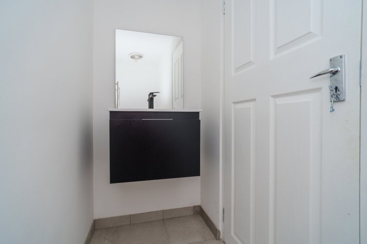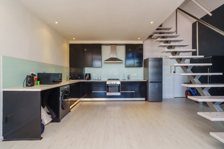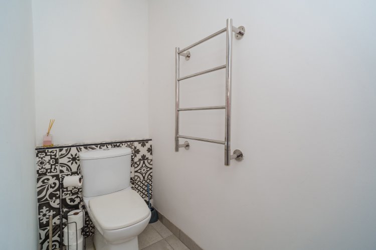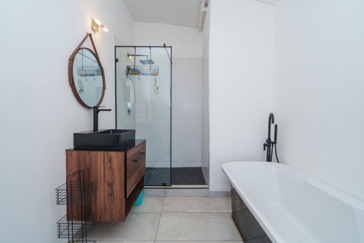 On the 1st floor (loft level), there is a spacious bedroom, with a large bathroom, separate toilet and a large open area perfect for open-clothing storage, or to install BIC's if needed. The bathroom includes a beautiful glass shower, vanity, toilet and bath, with the guest loo including a basin/vanity and toilet. The windows continue up from the ground floor to the bedroom area for more air flow and light, and additionally there is an Air-conditioner for the bedroom.