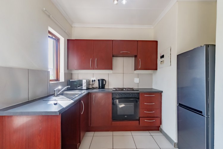 Situated on the second floor, the unit offers a bright and comfortable living space. The good-looking kitchen features practical laminate countertops and ample cupboard space, flowing seamlessly into the lounge area, which opens out onto a private balcony — ideal for your morning coffee or unwinding after a long day.