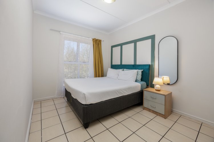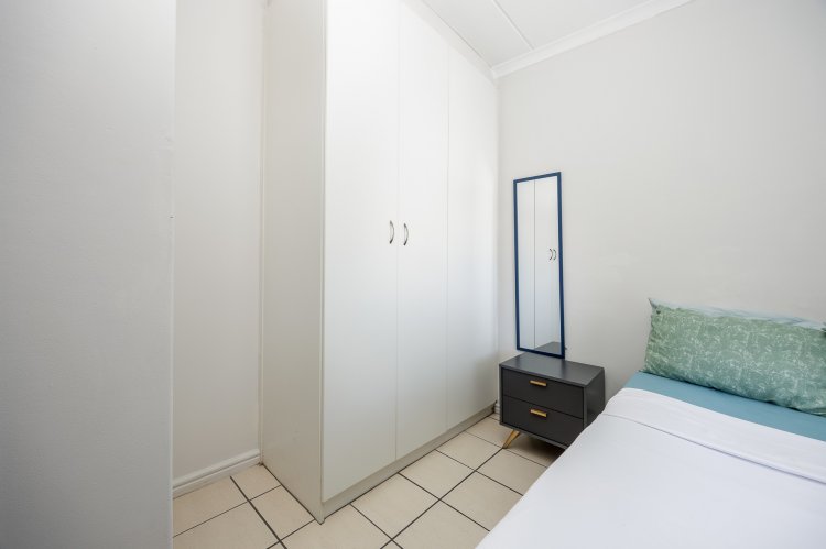• The Bedrooms: Two generously sized, fully tiled bedrooms serve as your private retreats. Both boast ample built-in cupboards to keep your space effortlessly clutter-free.