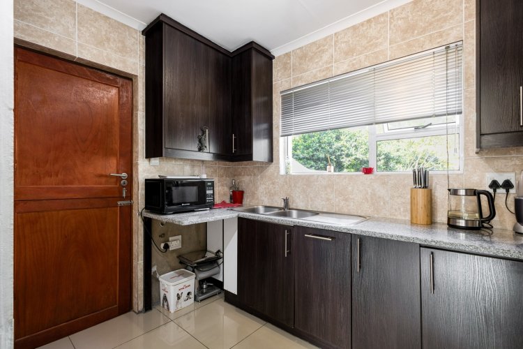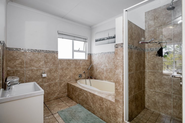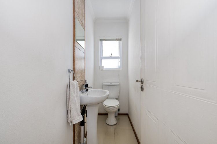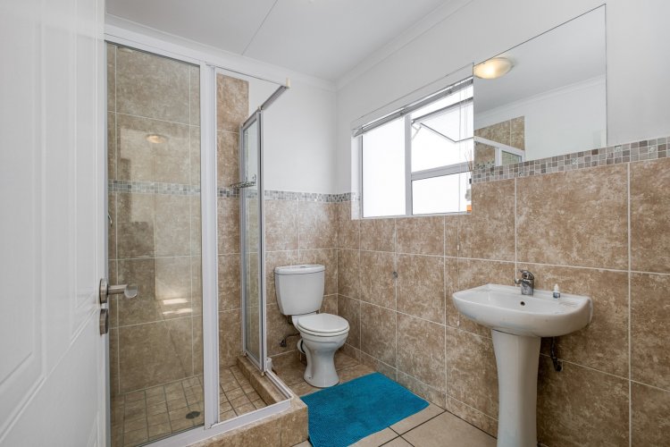 Upstairs, you’ll find two well-sized bedrooms, each with its own en-suite bathroom for added privacy and convenience. The master suite features ample built-in cupboards and a full bathroom, offering a private retreat at the end of the day. A double automated garage and excellent security within the estate.