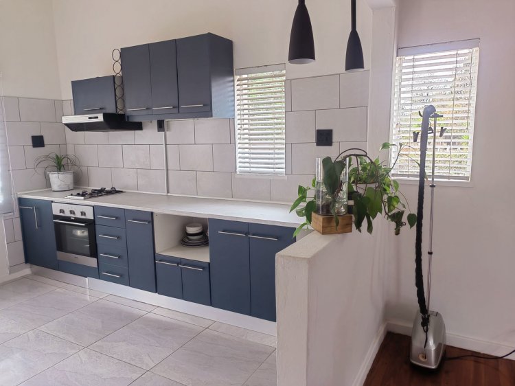 The home features two spacious bedrooms and a modern kitchen with sleek built-in cupboards, providing ample storage while maintaining a clean, contemporary feel. The property has been fully renovated from top to bottom, featuring brand-new finishes throughout and a thoughtful layout designed for comfort and practicality.