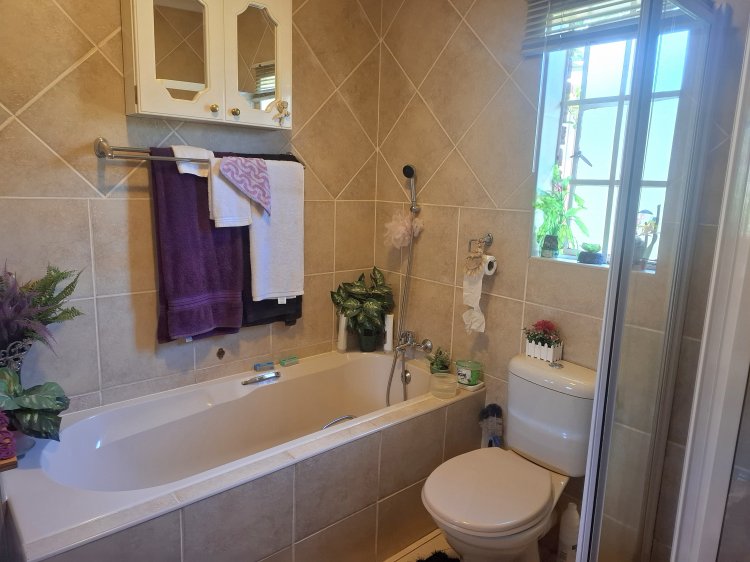 Consist of 2 reception areas a lovely living area with air con, leading to dining area with tiled floors. A well sized fitted kitchen with electric fittings for washing machine, hob, extractor fan with breakfast nook and double wash up basin. Next to the kitchen is your own entertainment area leading to your own private garden. 2 well sized bedrooms with build in cupboards. 1 Full bathroom with shower, bath, basin and toilet.