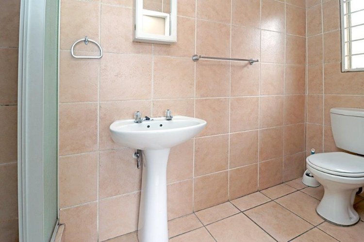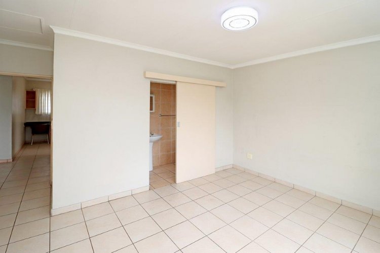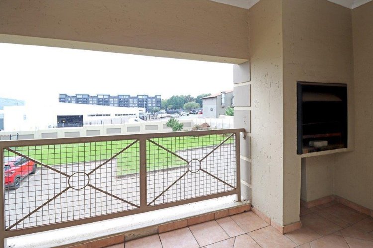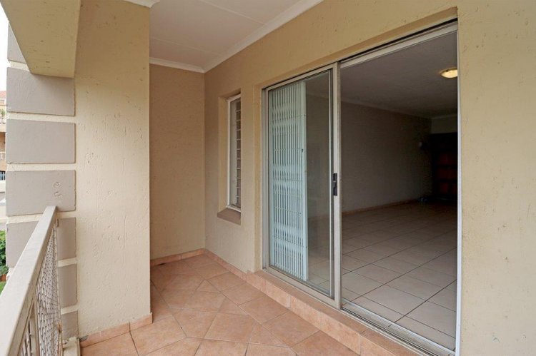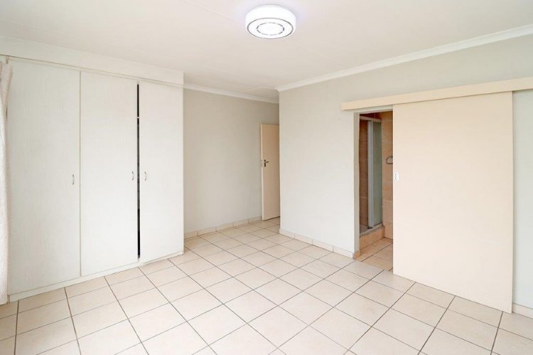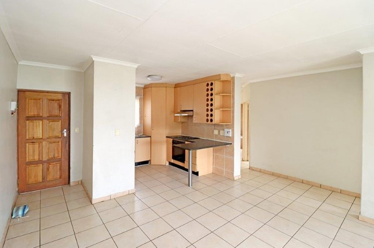 This upstairs unit is tiled throughout and measures 87sqm. Comprising open plan lounge and kitchen - the lounge opens onto a balcony with braai. The kitchen is plumbed for one appliance. The two bedrooms have built in cupboards, the main bedroom has an en suite bathroom - there is also a second bathroom and fitted study nook - ideal if you work from home. Covered carport and second open parking bay.