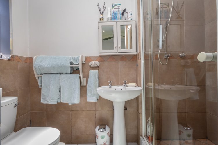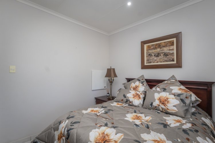 Outdoors, the property features a beautifully established, low-maintenance garden designed for relaxation, complete with a concrete patio table ideal for outdoor dining. An automated sprinkler system keeps the garden lush year-round, and the fully fenced garden area provides added privacy and safety for pets. This home combines functionality with charm, offering serene outdoor living and well-maintained interiors—all within a secure, lifestyle-focused estate.