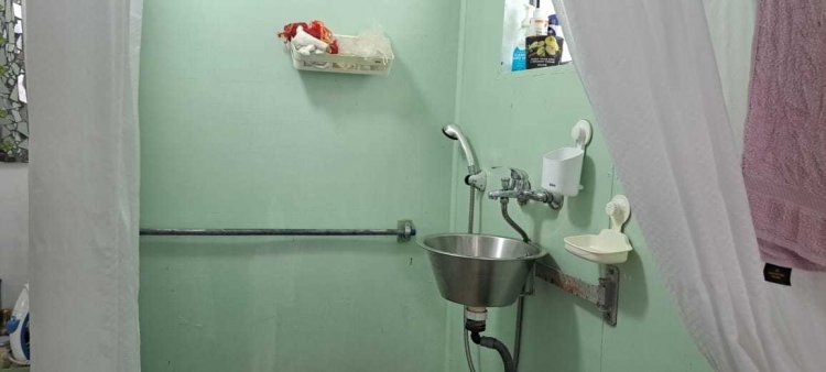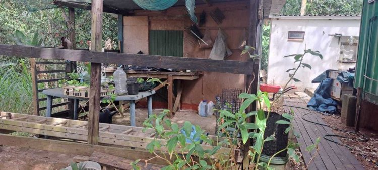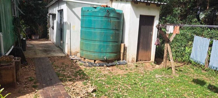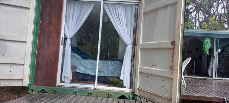 Behind the container home is a further container and separate garden shed which serves as a storage room with its own separate toilet and hand basin.