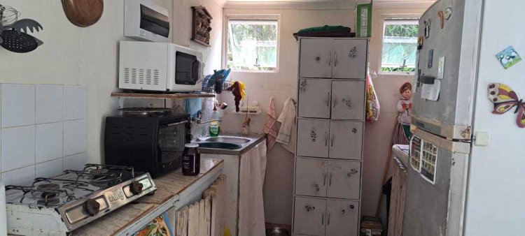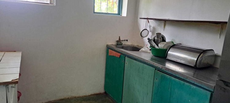The home has a front veranda, a spacious living area, a kitchen with basic built in cupboards and a sink, 4 bedrooms and two basic bathrooms. There is a small kitchenette with very basic cabinets. A 5000 litre water tank plumbed into the house. The home has seen better days but is solidly constructed with wooden windows and a roof which does not leak. It has great inland views and a large neat yard which is fenced.
