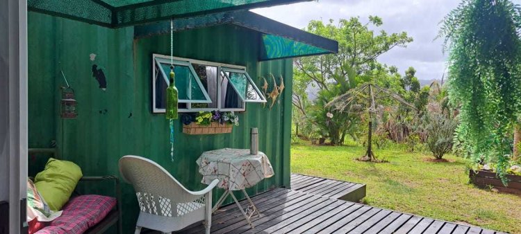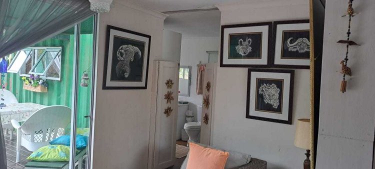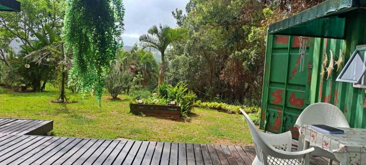 The container home is quaint and quite charming and nestled in its own fenced yard. Two en-suite bedrooms which face inland and have all the lovely views. A front veranda which is spacious and gives the container home a great feel. Double doors from the front veranda open into a living area and a small library/dining area. The kitchen is off the living area and has basic but serviceable cupboards.