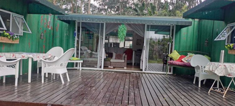 A home with character and quite different. Set in a quiet and serene environment. Lots to commend the inventiveness of this container home. A place of peace and contentment. It has a small and pretty front garden.