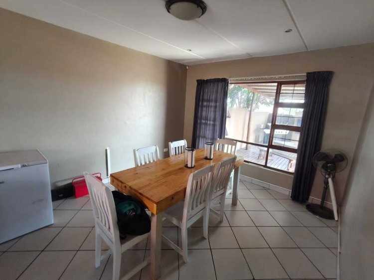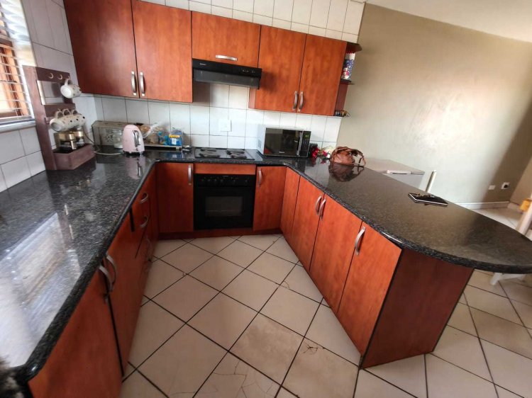 This neat duplex apartment in Cashan offers comfortable and easy living in a popular area. Downstairs, you are welcomed into a spacious lounge that flows into the open-plan kitchen and dining area. This layout makes the home feel open and inviting, perfect for everyday living. The kitchen is practical and well planned, with a separate scullery and laundry to keep the living space tidy. A guest toilet downstairs adds extra convenience. From the living area, you step outside onto a deck with a built-in braai, ideal for relaxing or entertaining family and friends. Upstairs, the apartment offers three comfortable bedrooms and two bathrooms. The main bedroom opens onto a small private patio, creating a quiet space to enjoy fresh air and peaceful moments. The other bedrooms are well sized and share a bathroom, making the home suitable for families or professionals. The property includes a single garage with additional open parking in front of the garage. Located in the sought-after area of Cashan, this duplex apartment is a great option for buyers looking for a comfortable and low-maintenance home.