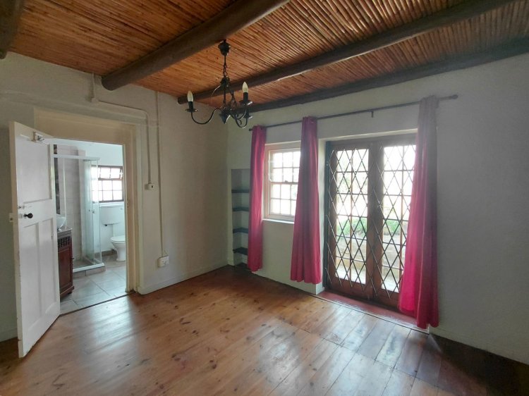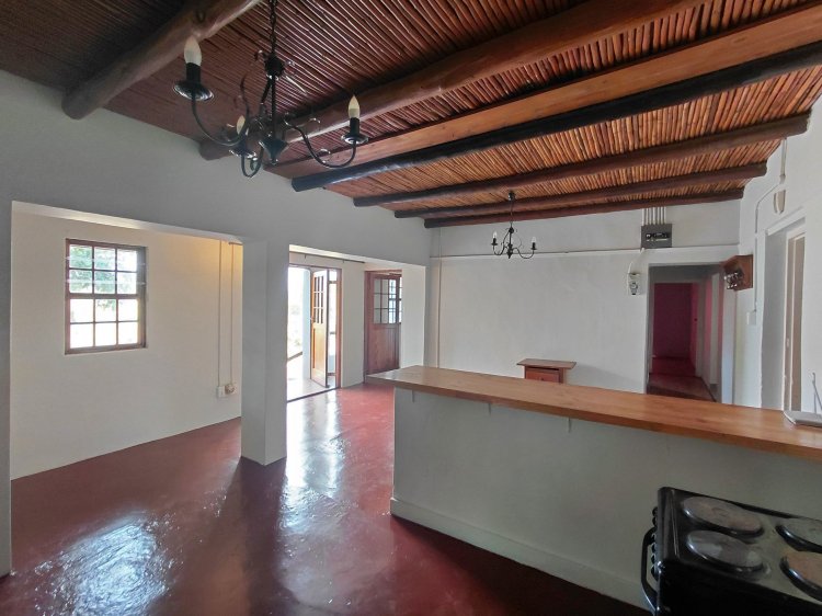 The open-plan layout seamlessly connects the lounge, dining area, and kitchen, creating a light-filled and welcoming living space. Sunlight streams through the windows, highlighting the cottage's thick walls and natural charm, while the reed ceiling adds distinctive character. Wooden doors open onto the back stoep, overlooking the garden and allowing a gentle breeze to flow through the home, beautifully connecting indoor and outdoor living. A walk-in pantry and separate scullery add modern-day practicality, and there is also space to install a Dover stove - an addition that would further enhance the home's character and appeal. The home offers two en suite bedrooms, one featuring a full en suite bathroom. A cozy third bedroom is complemented by an adjoining versatile space, perfect for use as a study or dressing room, allowing the home to adapt effortlessly to your lifestyle.