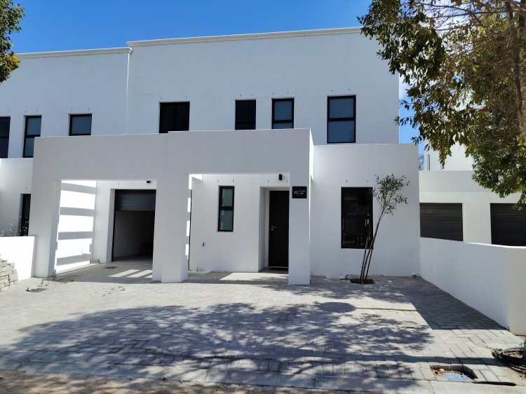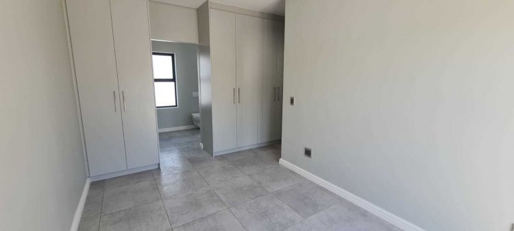 Situated in the sought-after Croydon Gardens Estate, this modern three-bedroom residence offers secure estate living amid the scenic Winelands. The home showcases contemporary design elements and tasteful finishes, with an airy open-plan living area where the kitchen and lounge blend effortlessly to create a welcoming and functional space. Large tiled floors, subtle downlighting, and a striking glass-panel staircase enhance the home’s modern character. The kitchen is both stylish and practical, featuring soft grey cupboards, quartz worktops, a central island, and built-in appliances including a hob, oven, and extractor. Upstairs accommodation includes three comfortable bedrooms, with the main suite fitted with an en-suite bathroom, while the additional bedrooms are serviced by a sleek family bathroom; a conveniently placed guest cloakroom is located downstairs. A private balcony with views across the estate and surrounding Winelands, together with a built-in braai, provides the perfect setting for outdoor relaxation and entertaining.
