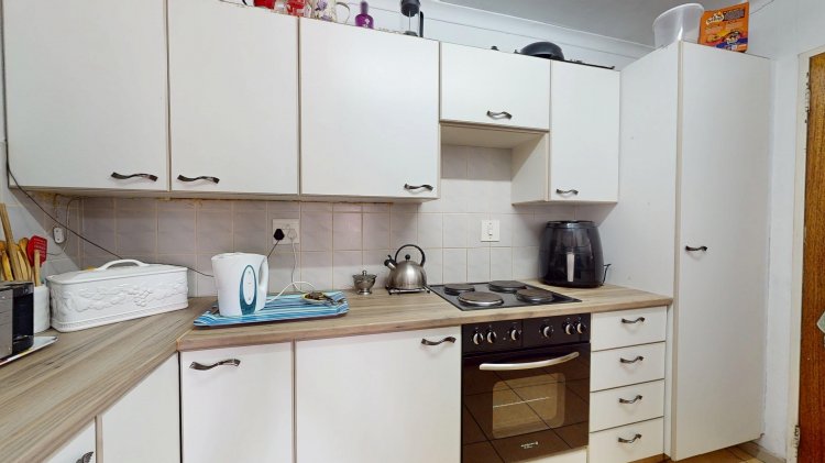 The property offers three well-sized bedrooms, all fitted with built-in cupboards. The family bathroom includes a bath, basin, and toilet, while the main bedroom enjoys a private en-suite with a newly renovated shower, basin, and toilet, offering modern comfort and convenience.