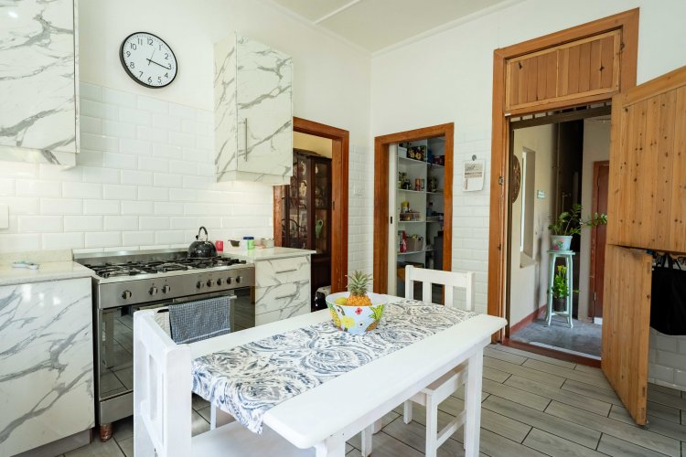 The beautifully renovated kitchen is a showstopper, featuring sleek cabinetry, modern countertops, a gas hob, double sink, and the bonus of a separate pantry and scullery for ultimate convenience. Flowing from here, the welcoming lounge boasts original wooden floors and high ceilings, while the open-plan dining area makes entertaining effortless. An enclosed patio extends your living space, perfect as a sunroom, second lounge, or entertainment hub.