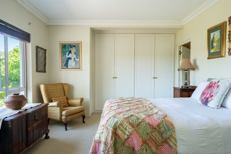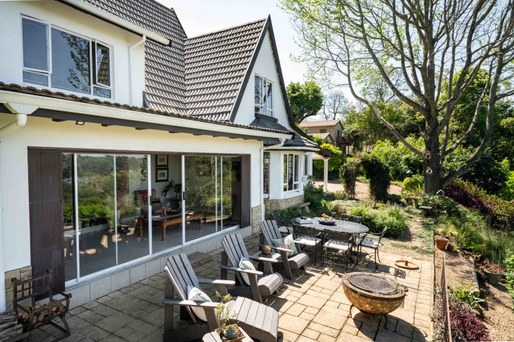 The formal lounge, complete with fireplace, opens to a sunny, "secret" garden – the perfect spot to soak up warmth. A second lounge with sliding doors frames the view beautifully, while the outdoor patio with its water feature is ideal for enjoying a braai with friends. A downstairs bathroom adds convenience.
