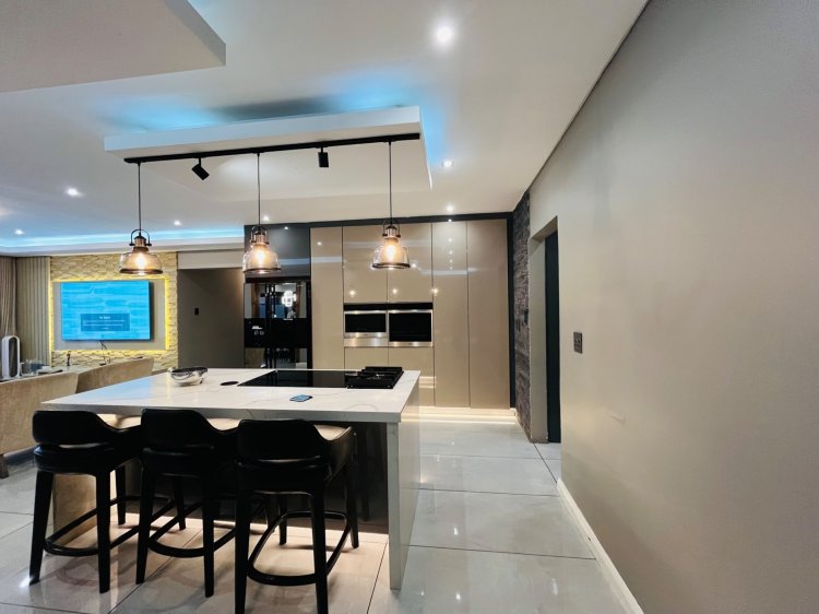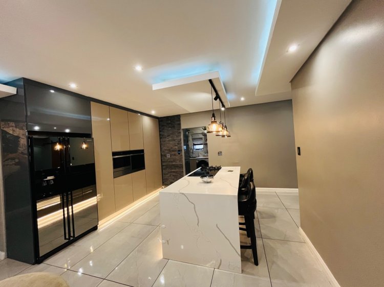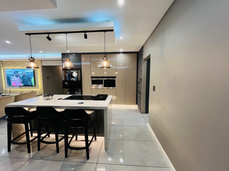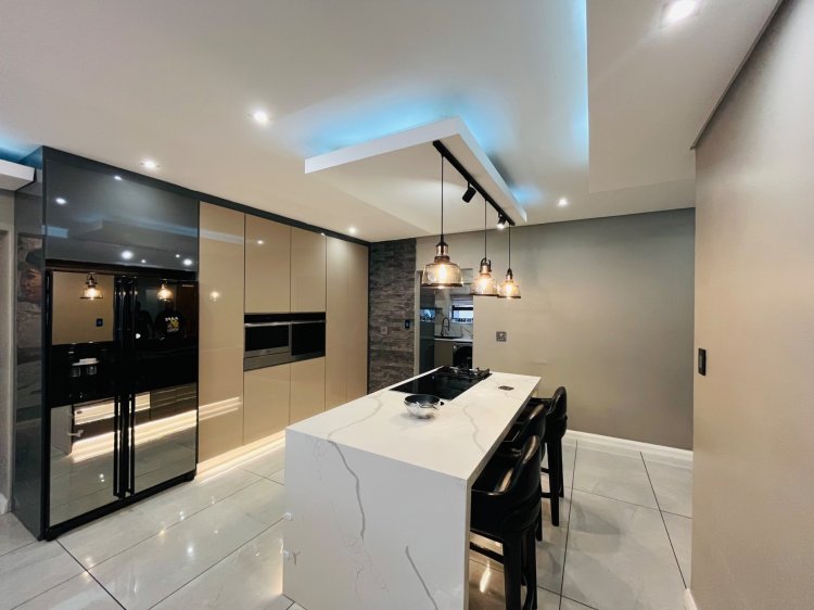 The home features a stylish and modern design, with spacious open-plan living areas that flow seamlessly, creating a warm and inviting atmosphere ideal for family living and entertaining. The contemporary kitchen is well-finished and practical, catering to today's lifestyle needs.
