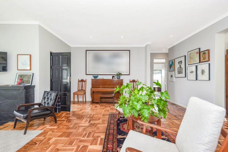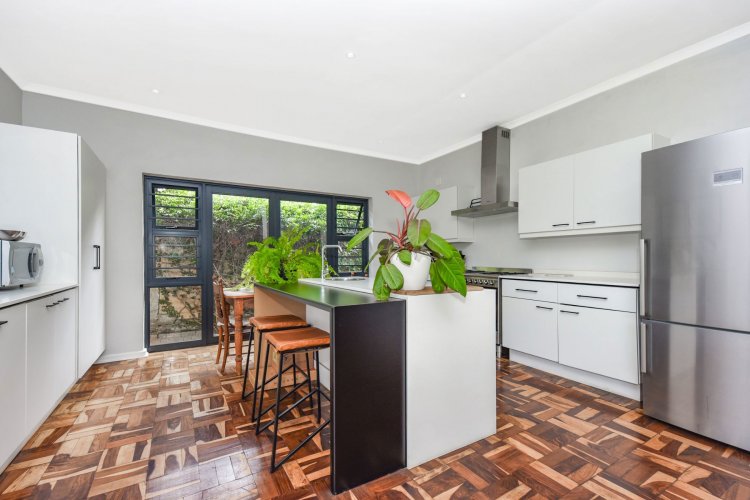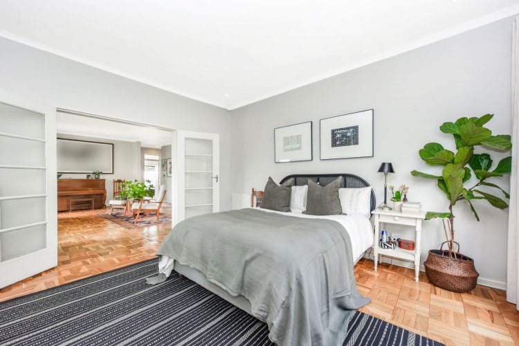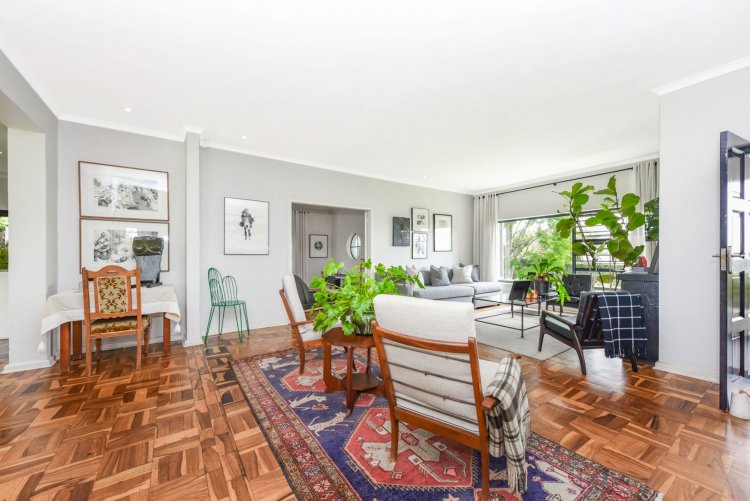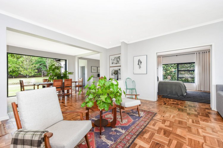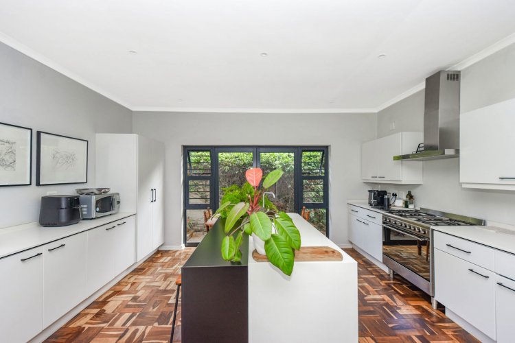 A standout feature of the home is the continuous parquet flooring, extending throughout the living spaces, bedrooms, and even the kitchen adding warmth, character, and a cohesive aesthetic rarely found in contemporary renovations.