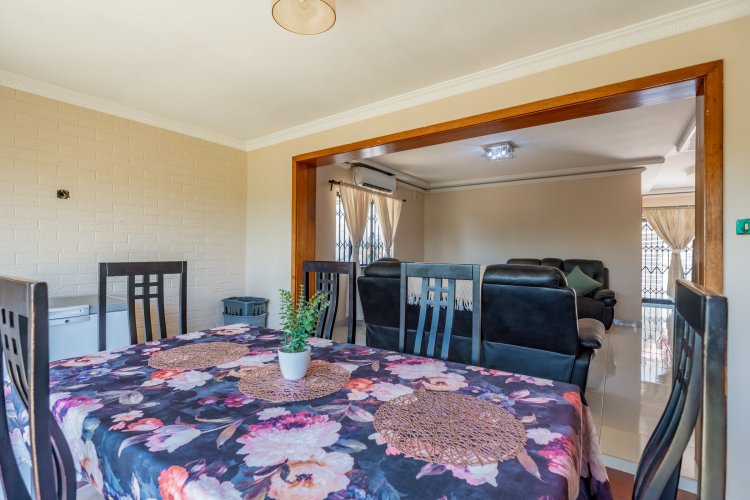 The modern gourmet kitchen is a dream, featuring sleek quartz stone countertops, plenty of cupboard space, and plumbed for your washing machine too! The kitchen flows into the dining area and generous double lounge, fitted with an air-con unit, perfect for relaxed family evenings.